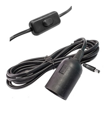 Kabel síťový k osvětlení s objímkou E27, vypínač, konektor jack, pro solární sestavy