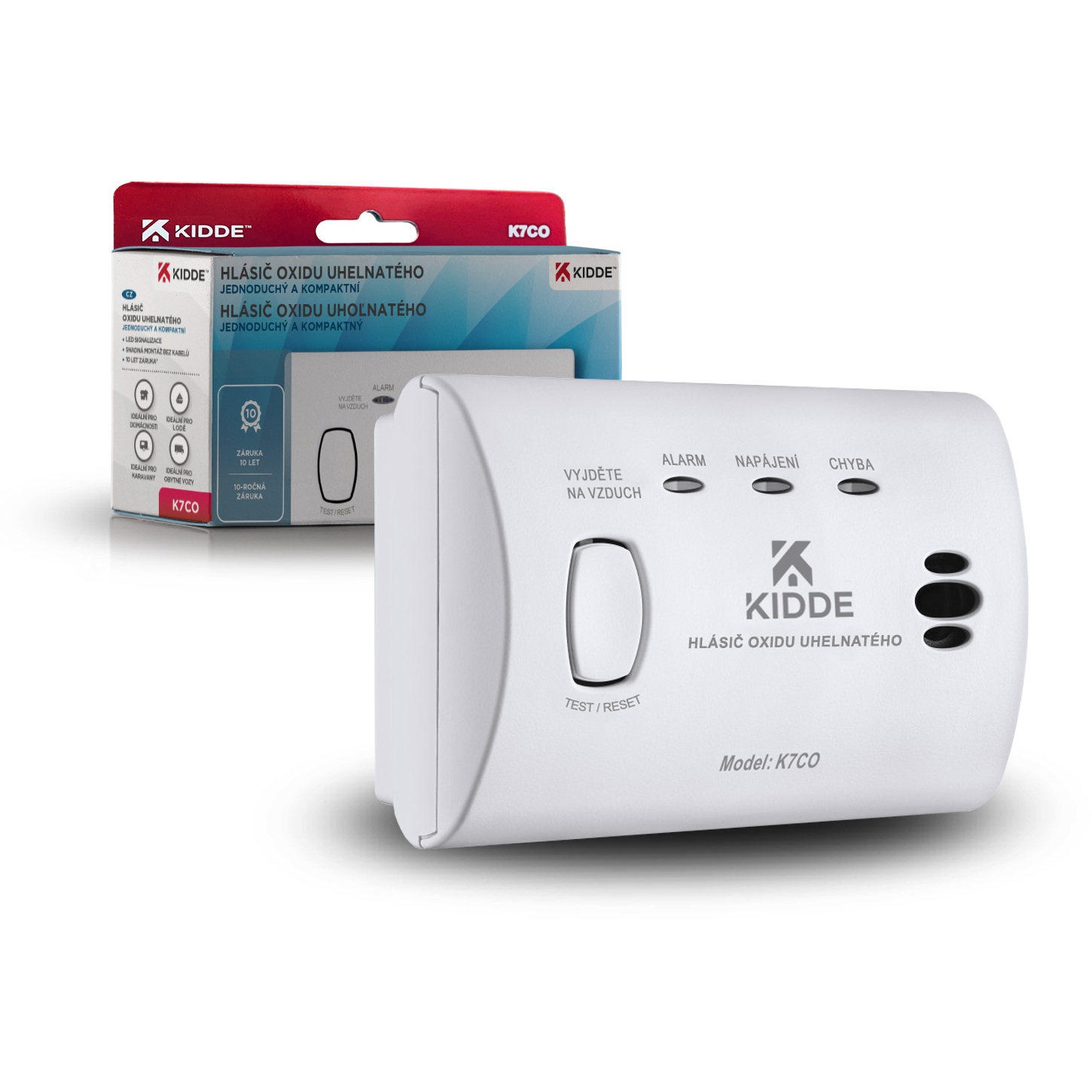 Hlásič Kidde K7CO úniku jedovatého plynu CO je vybaven průmyslovým senzorem se zárukou a životností 10 let. Jeho provozní doba je tak o 40 % delší, než je tomu u většiny konvenčních alarmů CO běžně nabízených na našem trhu.