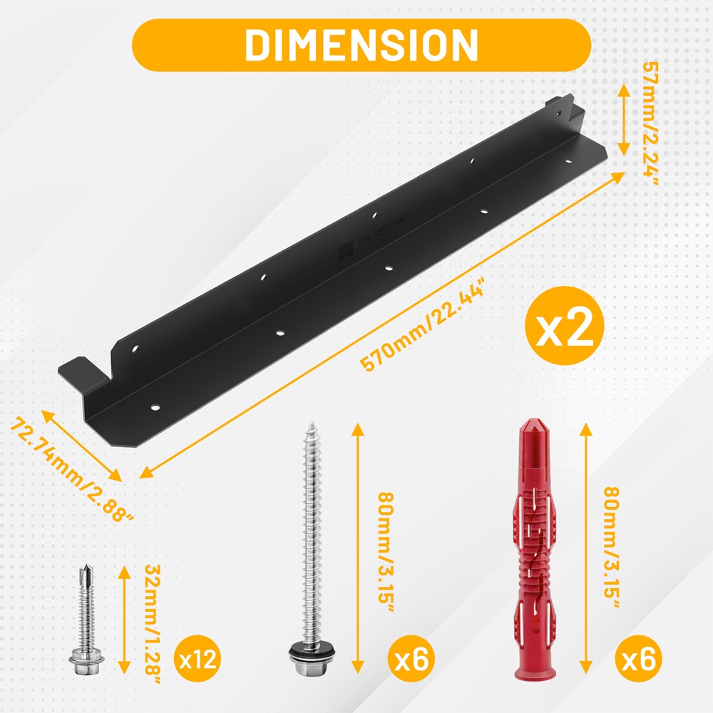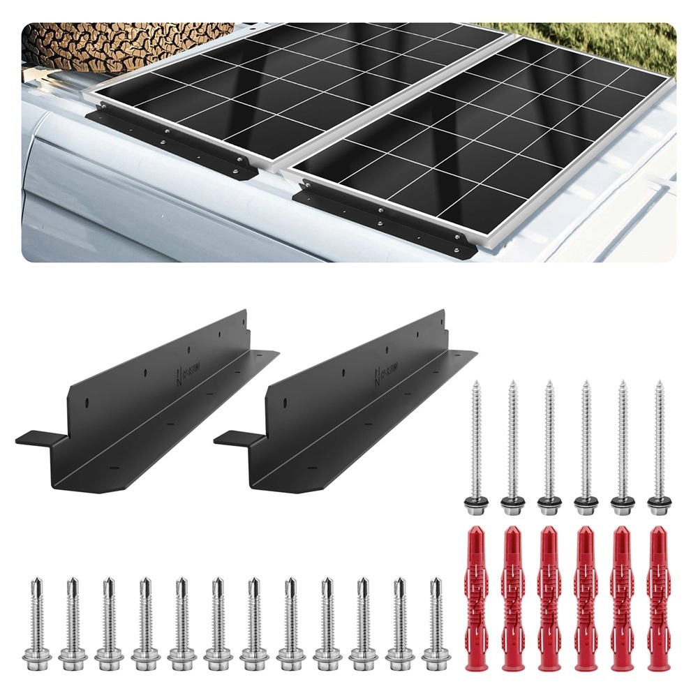 Sada 2ks kovových držáků v černé barvě o délce 57 cm. Jsou vhodné pro uchycení solárních panelů na stěnu, ploché místo a jiné plochy nebo střešní krytiny. Snadná instalace. Vlastnosti produktu: 1. Hliníkový materiál, nižší hmotnost. 2. Unikátní desigVíce