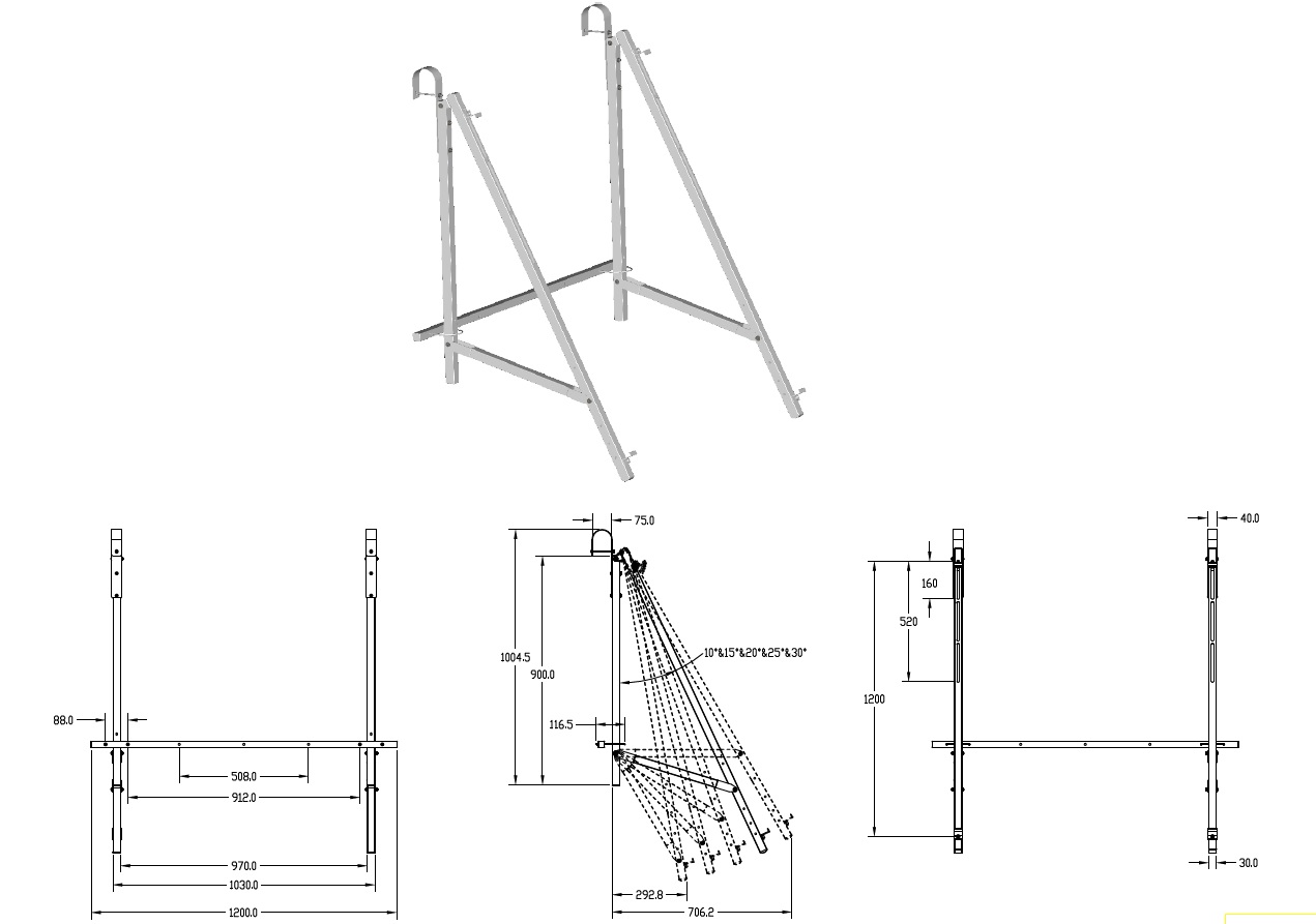 Držák pro solární panely na balkón a zeď ČERNÝ - Nastavitelný, úhel 10-30°