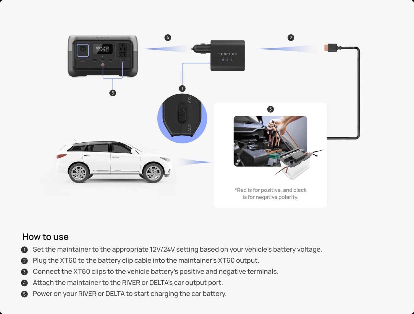 Použití zařízení s vysokým proudem, jako jsou například startovací zdroje, může během přepětí poškodit autobaterii. Inteligentní nabíječka EcoFlow s pětistupňovou technologií pulzního opravného nabíjení však zajišťuje zcela bezpečné nabíjení a startování. Mějte tedy raději chytrou nabíječku EcoFlow stále po ruce. Pro případ nouze i běžné údržby.