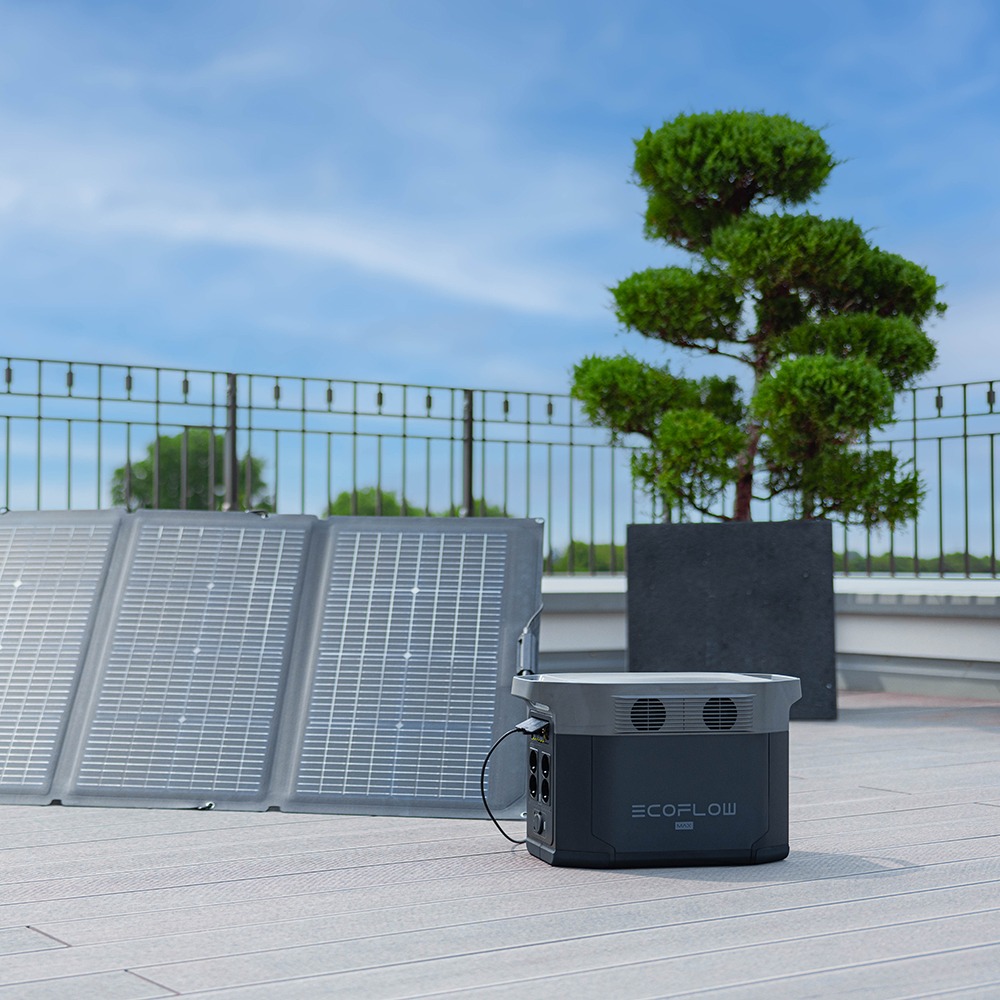 Společně se stanicí DELTA Max můžete využít solární panely EcoFlow s celkovým výkonem až 800 W. Připojit je možné tedy třeba EcoFlow solární panely 2 × 400 W. Konektor MC4 umožní připojit také další solární panely s rozsahem napětí od 11 V do 100 V, které jsou běžně dostupné na trhu. Algoritmus inteligentního sledování maximálního výkonu (MPPT) i během chladných nebo zamračených dní automaticky detekuje napětí a proud v reálném čase a zajišťuje tak optimální solární dobíjení po celý den.