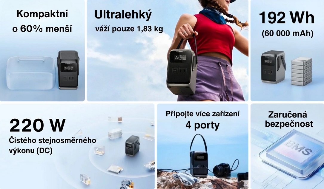 Základem stanice jsou trvanlivé bateriové články s inteligentním BMS a poctivá konstrukce, která obsahuje pět vrstev ochrany, takže bez problémů zvládá nárazy a otřesy typické pro běžné typy cestování.