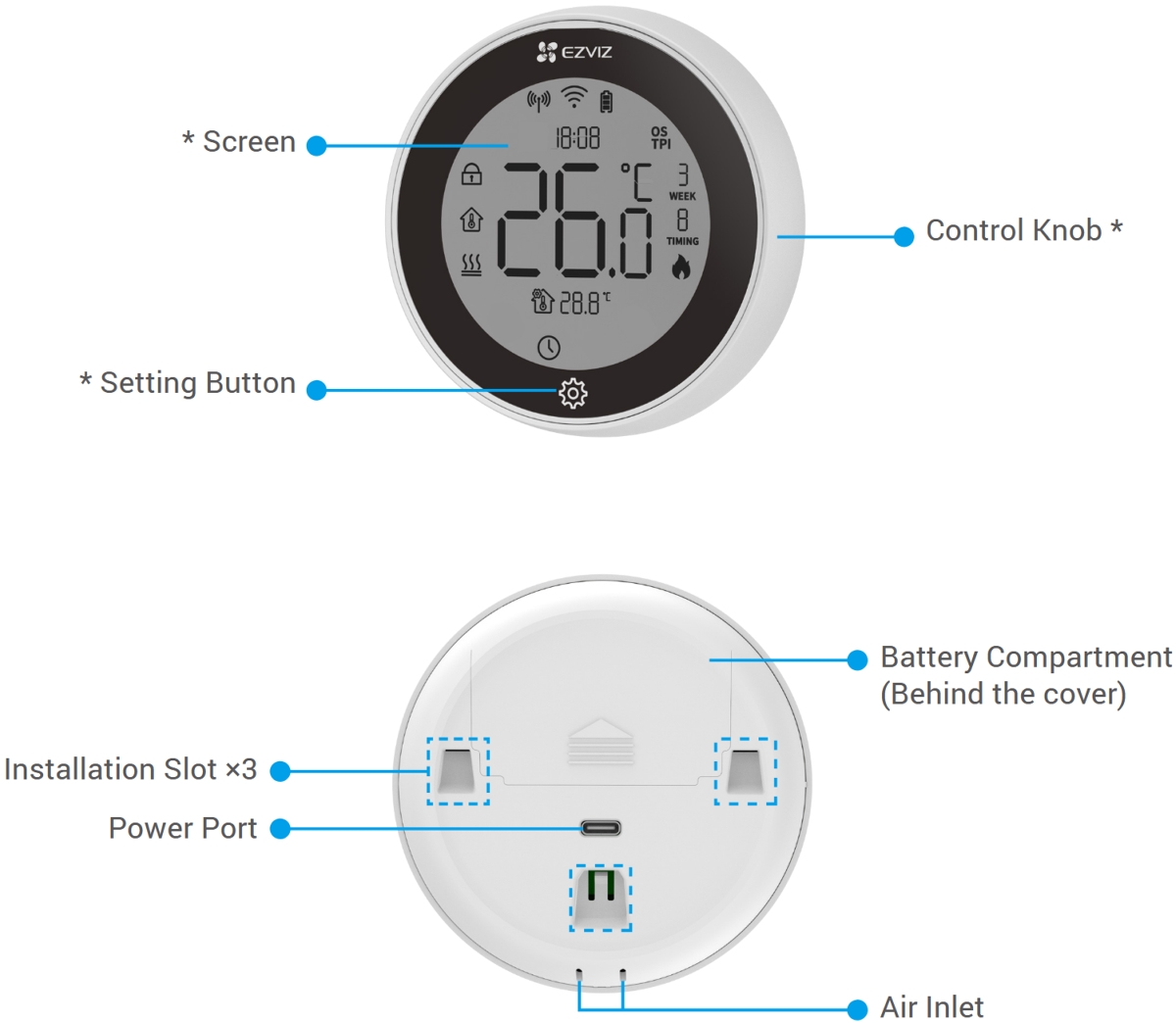 - Velký kulatý displej s přehledným zobrazením teploty a času