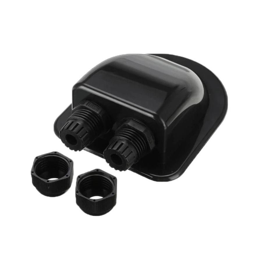 Kabelová střešní průchodka - DOUBLE k nalepení na střechu karavanu, lodě, ploché střechy atd. Střešní průchodka je odolná UV záření a slouží pro vodotěsný prostup kabelů od solárního panelu střechou karavanu, obytného vozu, lodě apod. Široký adhezní šVíce