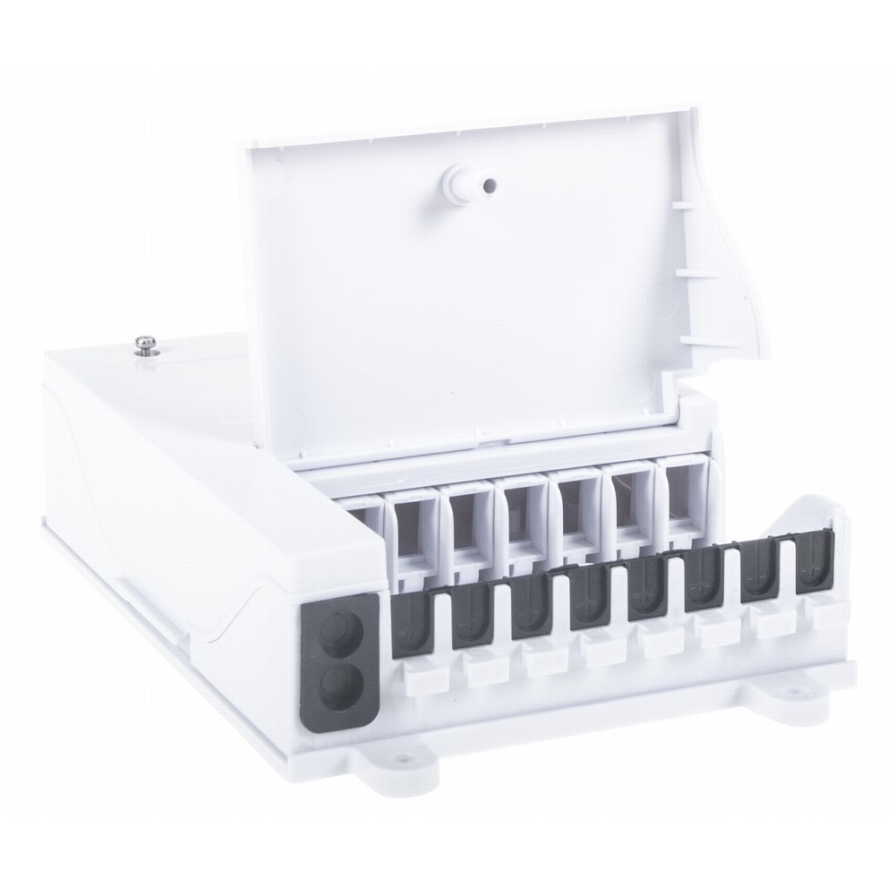 Vnitřní FTTH spojovací box pro montáž na stěnu vhodný pro ukončení/spojování optického kabelu v koncovém vchodu při výstavbě FTTH sítí. Uvnitř boxu se nachází (1) plastová kazeta a sloty pro až (8) SC simplex spojek. Součástí balení jsou teplem smrštitelnVíce