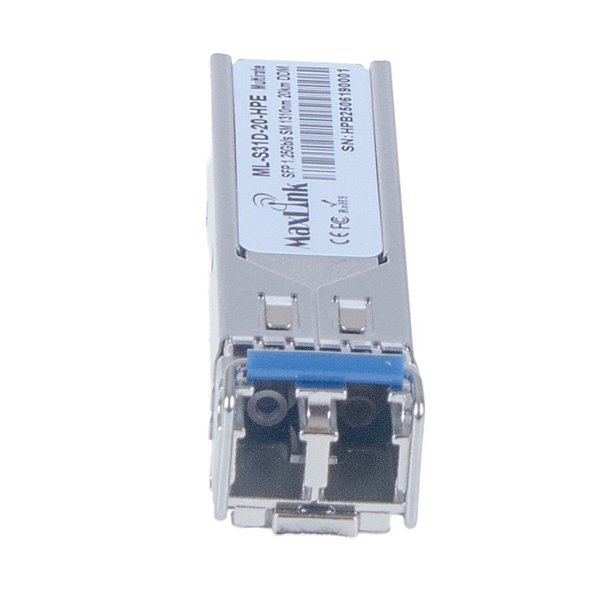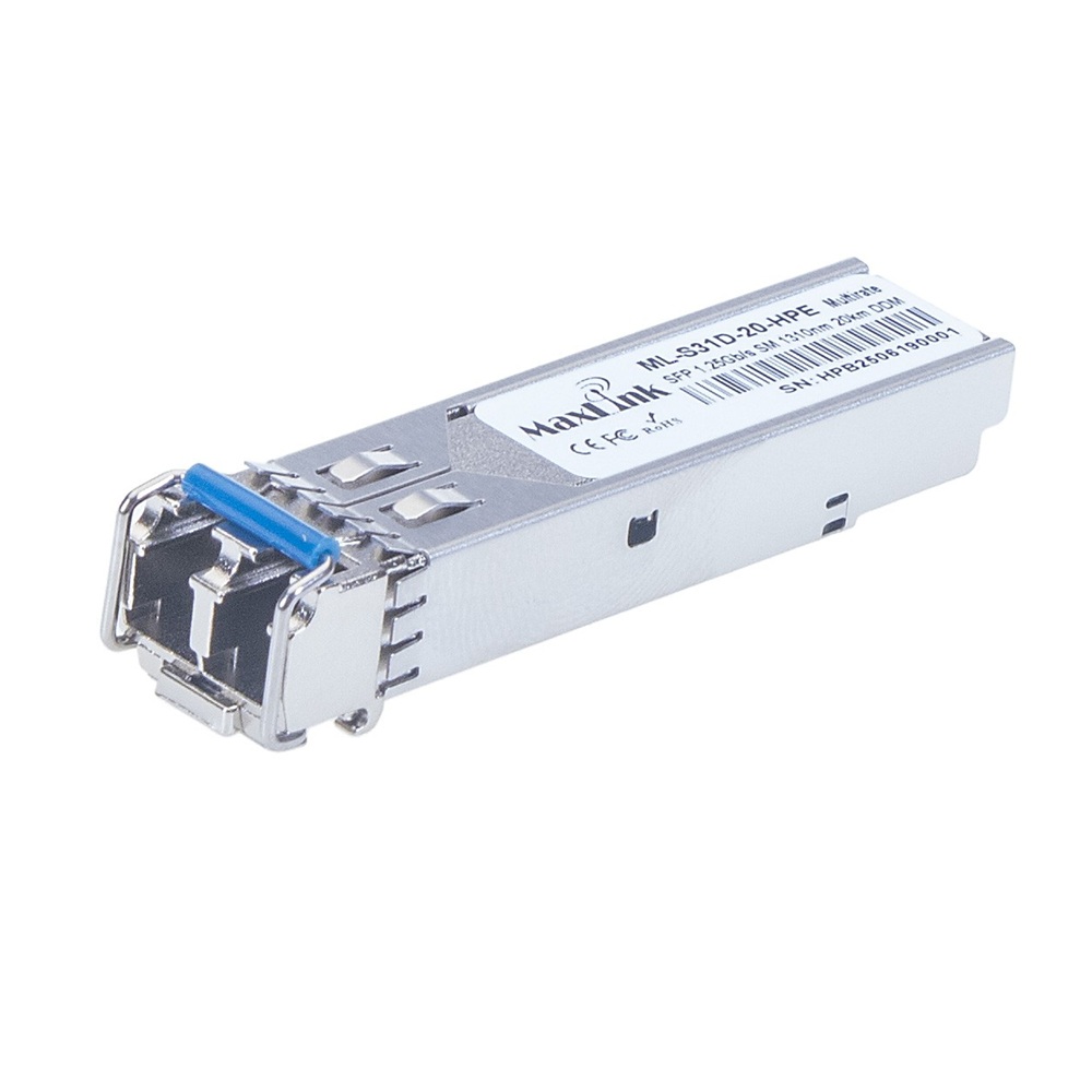 Maxlink ML-S31D-20-HPE je 1.25G SFP modul s 1310nm vlnovou délkou, dvěmi LC konektory a maximální vzdáleností 20km po singlemode optickém vlákně. SFP modul podporuje monitoring (DDM). LC konektory v SFP modulu mají broušení typu UPC. HPE kompatibiliVíce