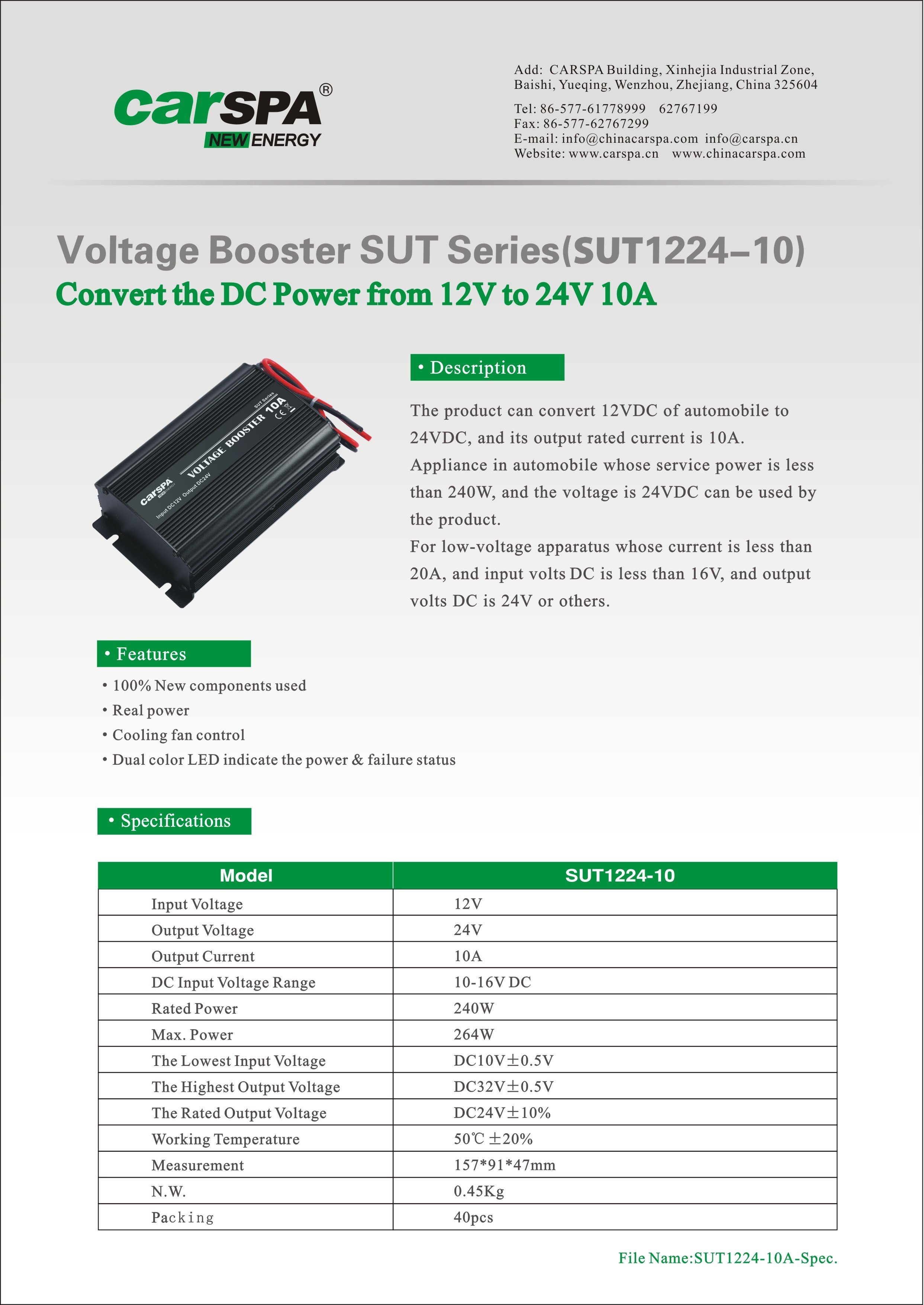 Měnič napětí Carspa SUT1224-10A, z 12V na 24V, 10A, 240W