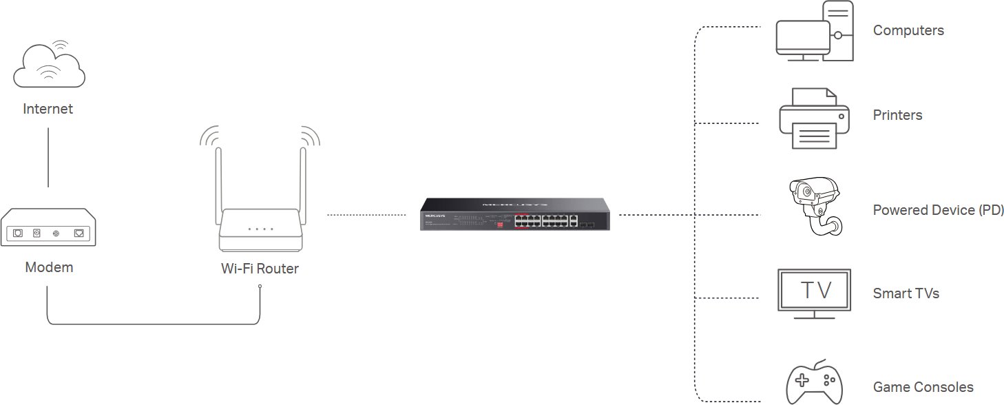 MERCUSYS MS120GP 20portový Gigabitový rackový switch s 16 PoE+ porty