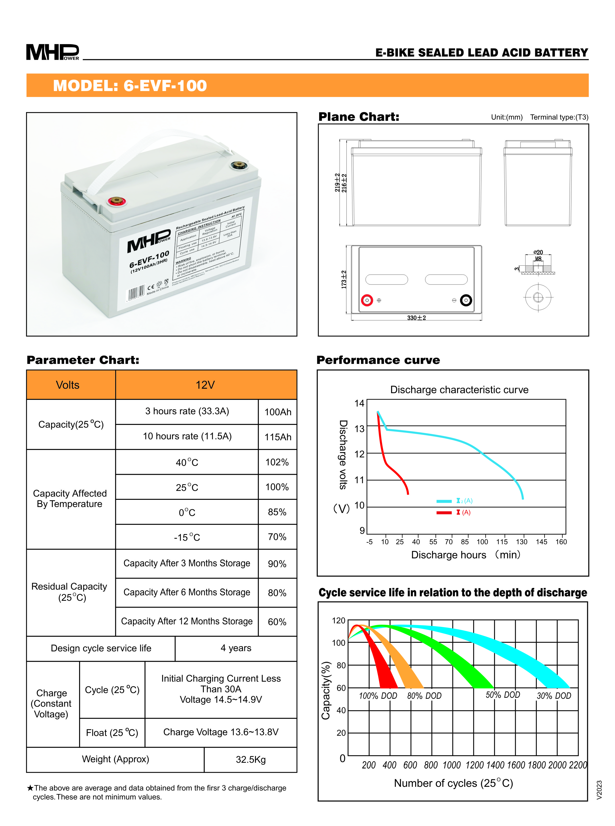 Trakční gelová baterie MHPower 6-EVF-100 je spolehlivým zdrojem energie navrženým pro náročné aplikace, které vyžadují hluboké cykly nabíjení a vybíjení. S kapacitou 100Ah a napětím 12V je ideální pro napájení elektrických vozidel, golfových vozíků, solárVíce