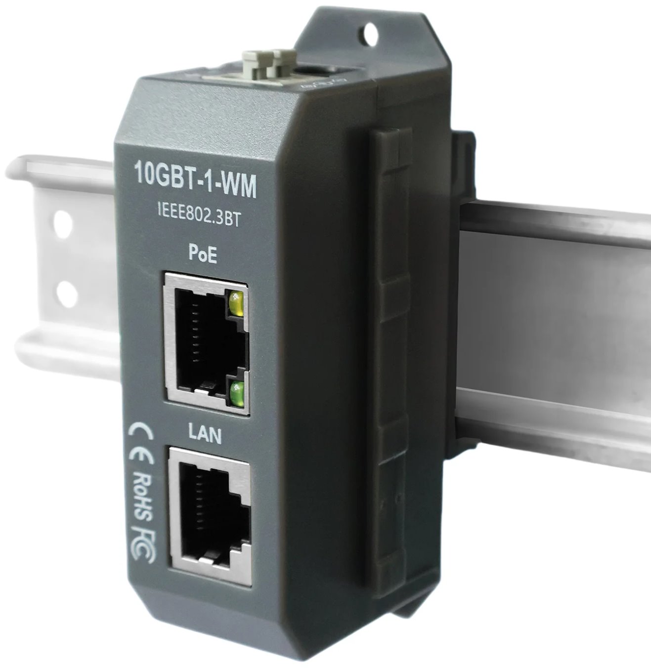 Maxlink 10GBT-1-WM je jednoduchý aktivní PoE injektor s podporou standardů 802.3af/at/bt a také 10G ethernetu (10/100M/1/2.5/10G). Je vybaven dvojicí stíněných ethernetových konektorů (1x vstup, 1x výstup) a napájení probíhá po 4 párech (napájení po 2 párVíce