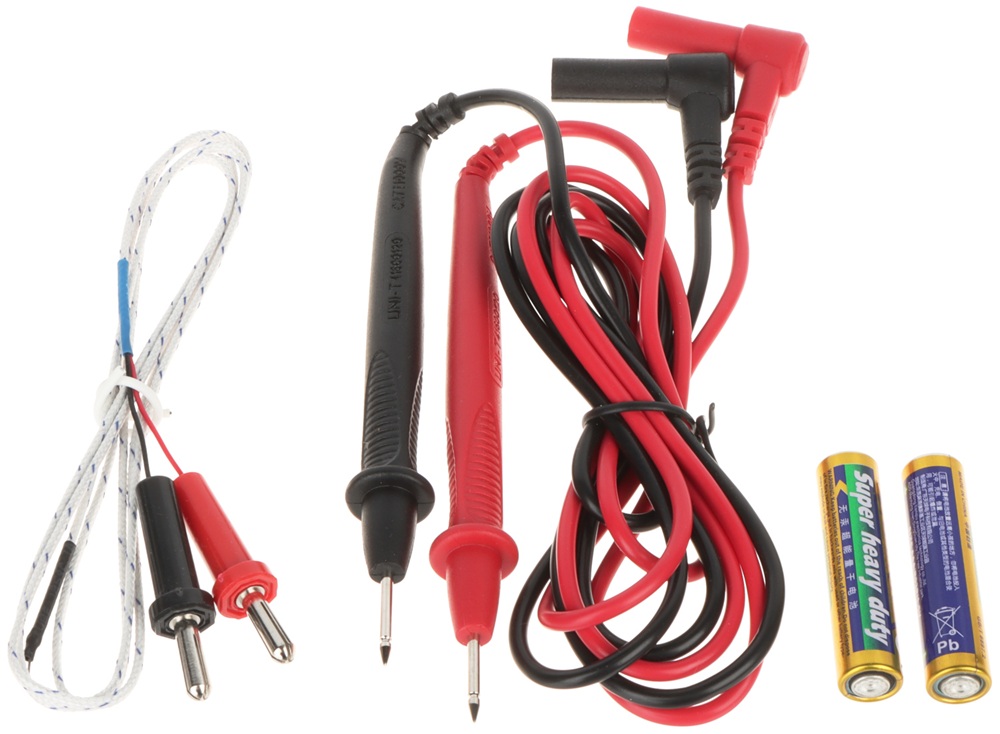 Měřící kabely,teplotní sonda (K-typ) součástí balení