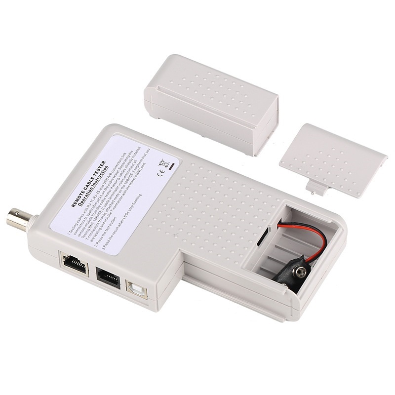 Tester pro síťové kabely zakončené konektory RJ-11,12,45 nebo koaxiální kabely a USB. Dokáže zjistit, zda kabel není přerušený, jestli nemá zkratované některé žíly nebo zjistit typ kabelu - patch nebo cross. Lze testovat kabely jak volné přímo testerem, tVíce