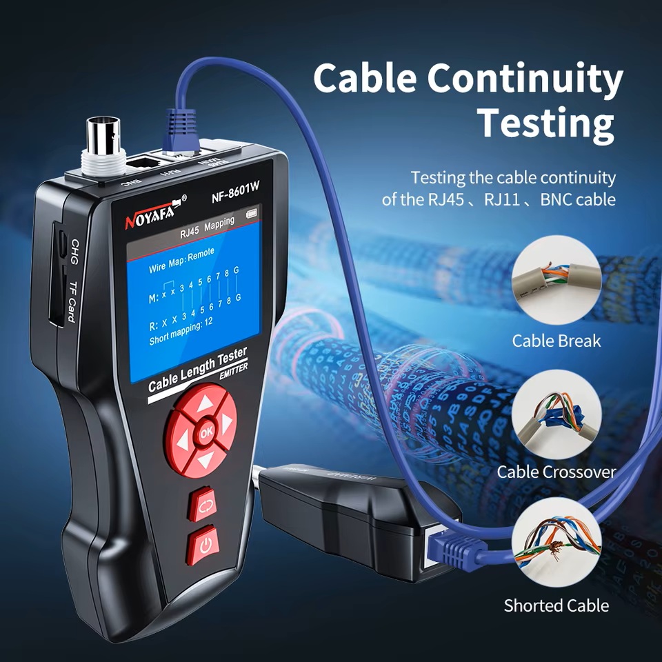 NOYAFA NF-8601 multifunkční tester kabelů (UTP/STP,Cat5e/Cat6/BNC, detektor, RJ11, POE, Ping)