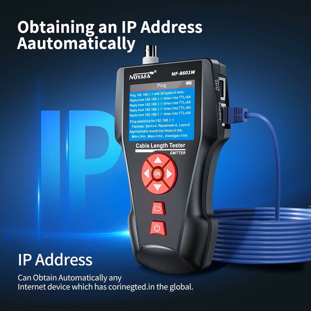 NOYAFA NF-8601 multifunkční tester kabelů (UTP/STP,Cat5e/Cat6/BNC, detektor, RJ11, POE, Ping) Profesionální ethernet tester je určen pro síťové techniky i náročné uživatele. Nabízí komplexní diagnostiku kabelů RJ45, RJ11 a BNC, měření délky a přesnou lVíce