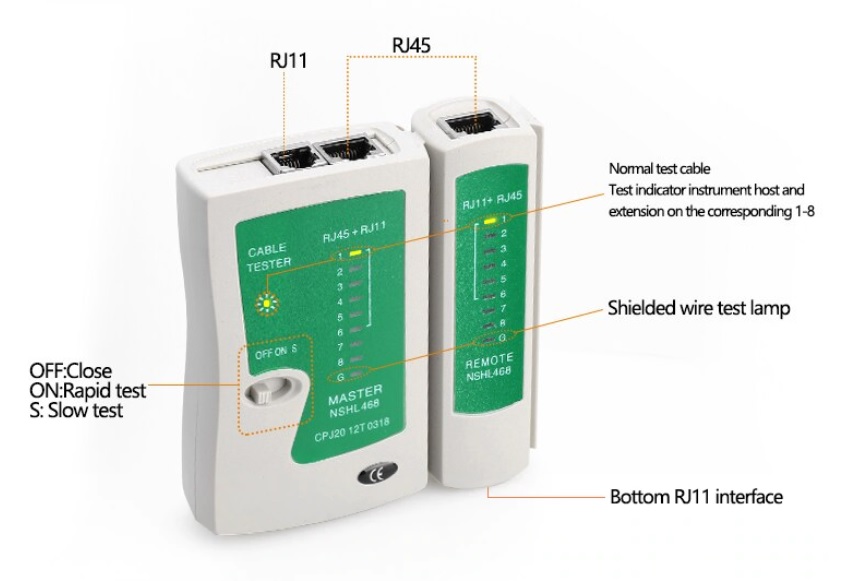 NOYAFA NSHL-468 Tester síťových kabelů RJ11/RJ12/RJ45/UTP/FTP
