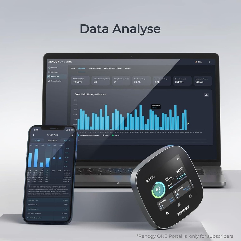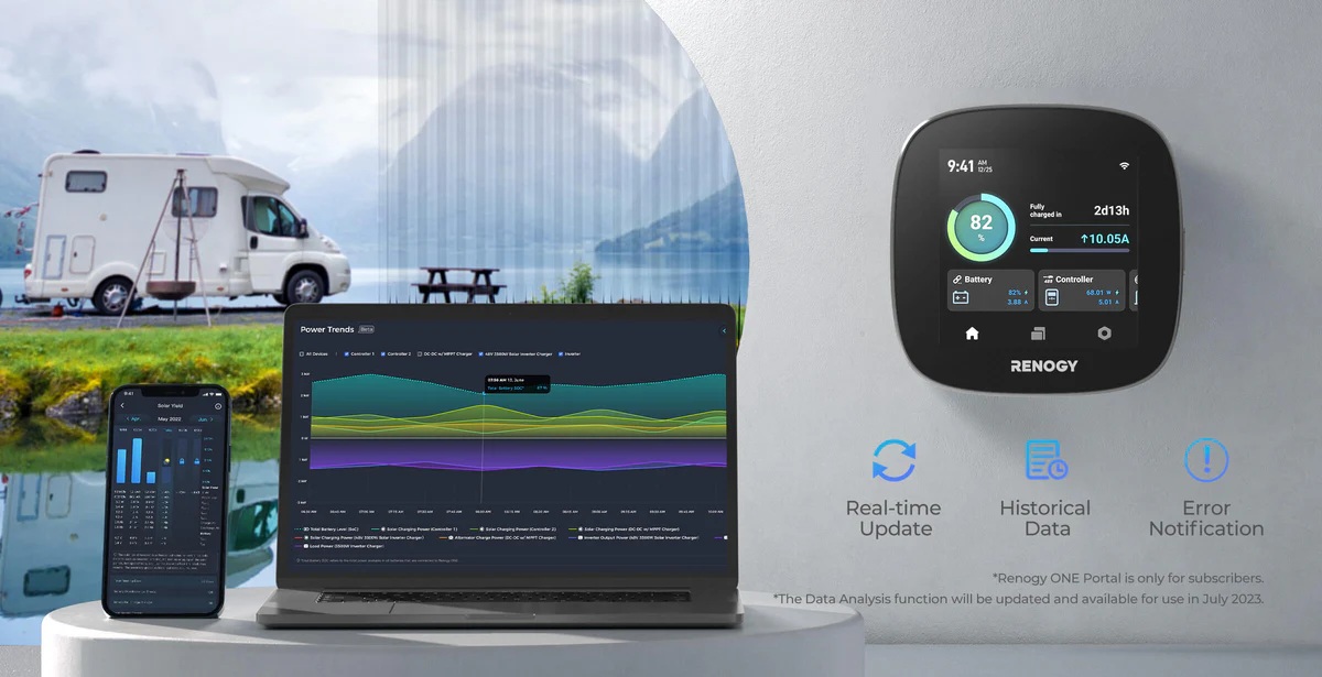 S Renogy ONE Core můžete sledovat spotřebu a výrobu energie odkudkoli na světě, a to v reálném čase. Díky tomu získáte kompletní přehled o svých energetických datech, ať už na cestách nebo doma.