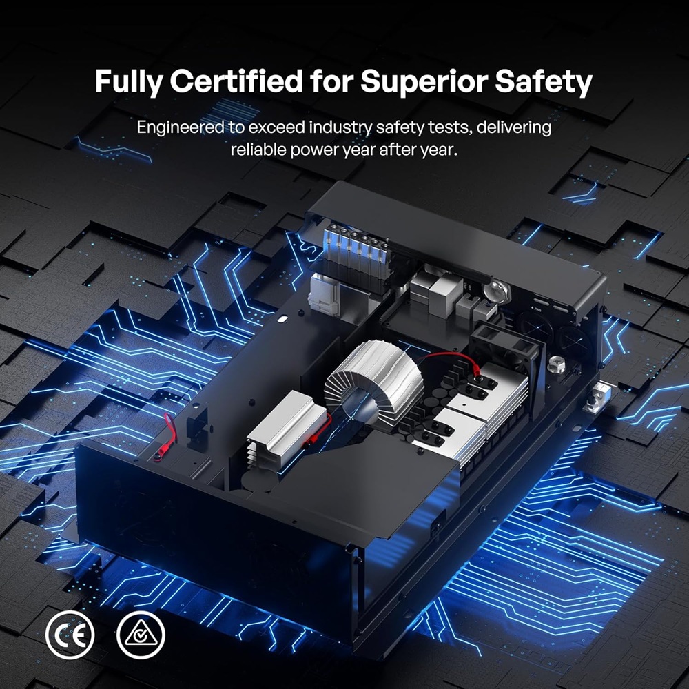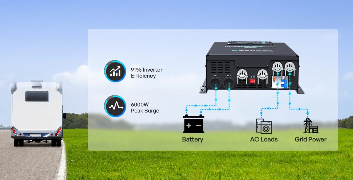 Je kompatibilní s širokou škálou lithiových a olověných baterií a podporuje střídavý vstup, takže nabízí flexibilní a kompletní řešení napájení mimo síť. Nabíječka s invertorem umožňuje plynulé přepínání mezi střídavým vstupem a napájením z baterie během 20 milisekund, čímž zajišťuje nepřerušovaný provoz připojených zátěží.