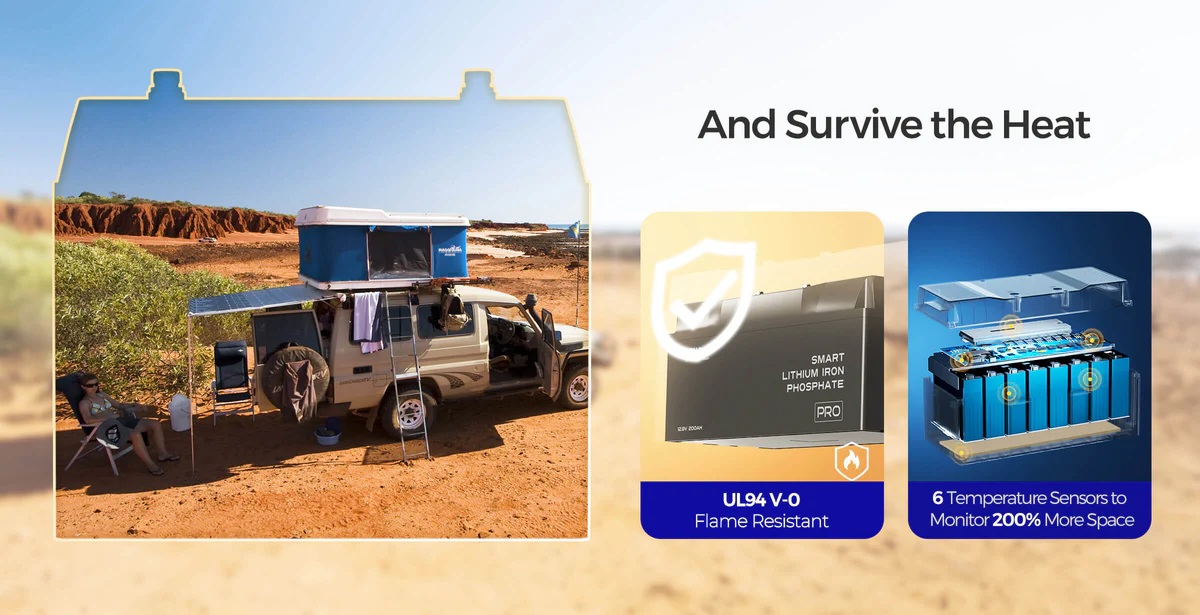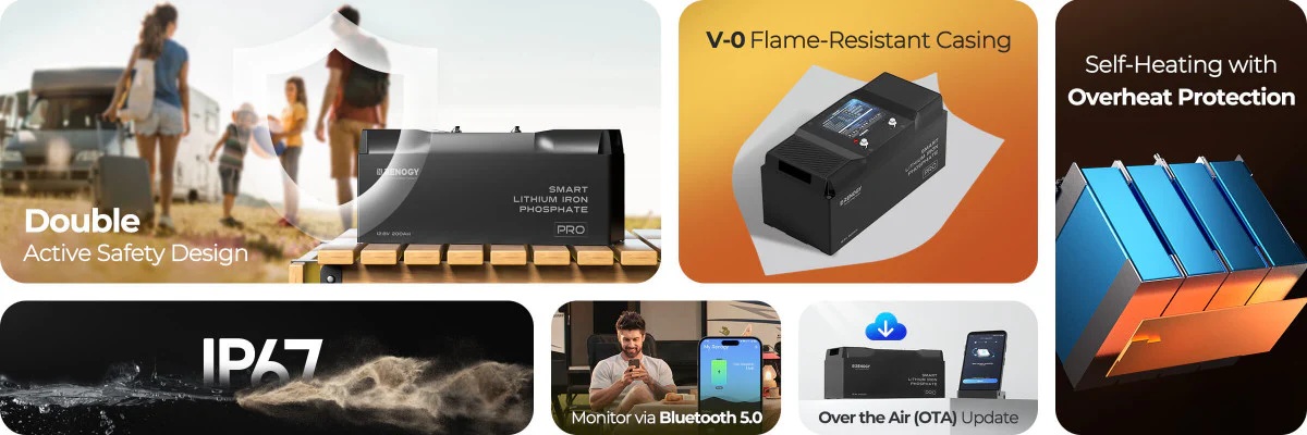 Baterie Renogy PRO využívá nejbezpečnější LiFePO4 technologii, která zaručuje vynikající teplotní stabilitu a eliminuje riziko tepelného úniku v omezených prostorách karavanu. S impozantní 200Ah kapacitou poskytuje dostatek energie pro všechny vaše spotřeVíce
