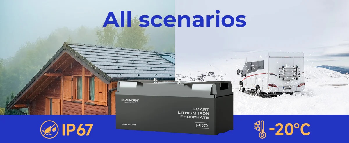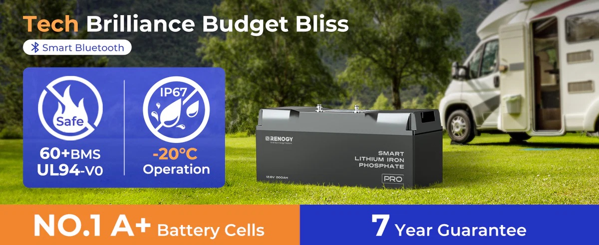 Renogy PRO 200Ah 12V LiFePO4 s výhřevem, Bluetooth, IP67 Lithium Smart Battery - pod sedadlo
