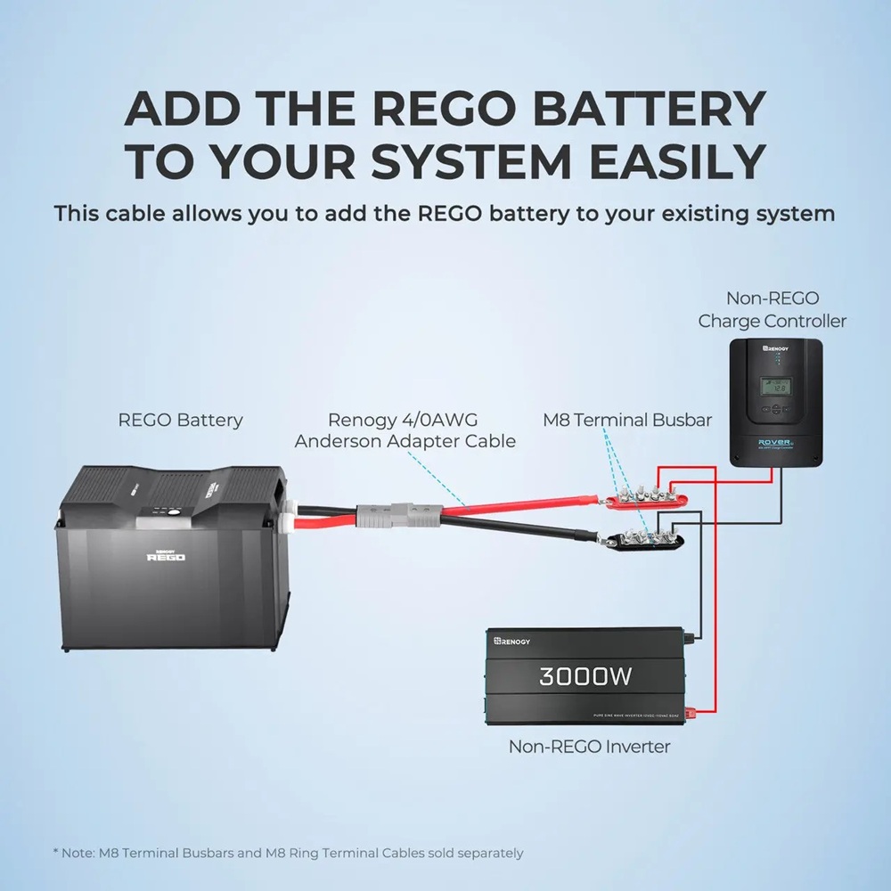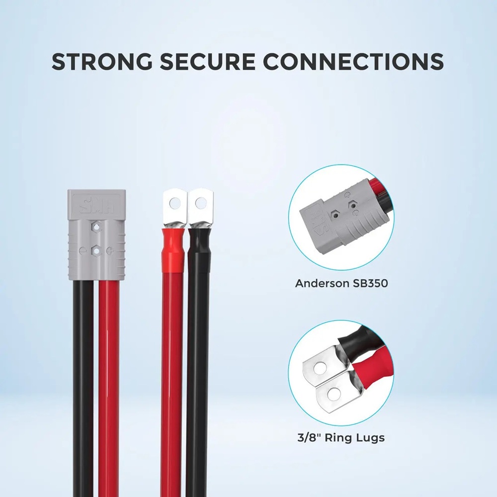 Tento adaptérový kabel Anderson s délkou 40 cm a průřezem 4/0 AWG je speciálně navržen pro práci s produkty řady REGO. Díky dvojici vyhrazených oček 9mm na jednom konci a konektoru Anderson SB350 na druhém konci vám umožňuje snadno přidat masivní kapacitu lithiové baterie REGO do vašeho stávajícího systému.