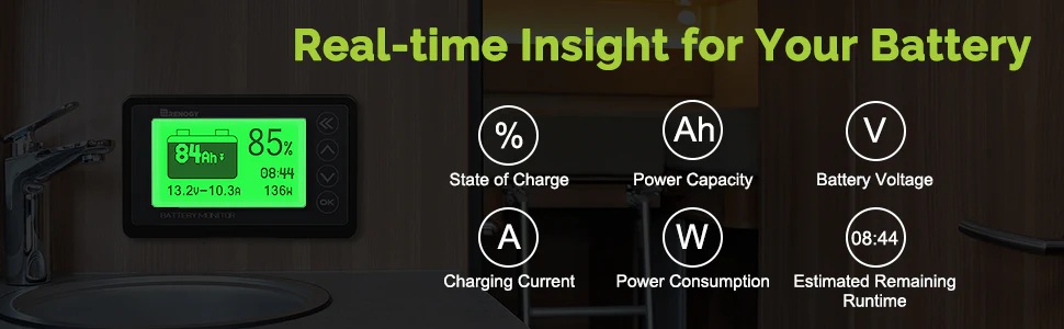 Monitor baterií Renogy je navržen pro sledování výkonu většiny typů baterií. Jeho vysoce přesná měření eliminují dohady o používání baterií a zlepší celkový výkon a životnost vaší bateriové banky!