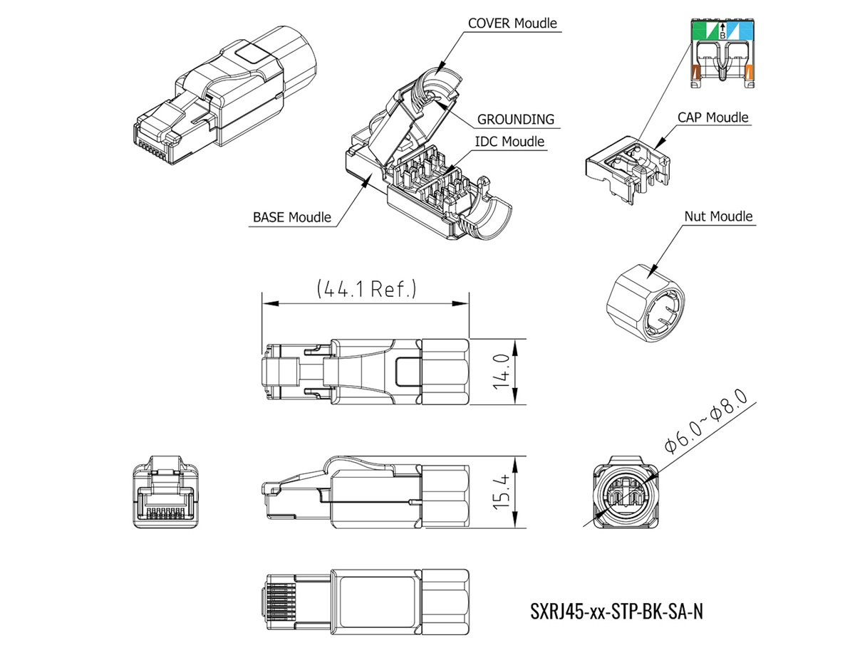 - Konektor bez problémů splňuje požadavky z mezinárodních standardů ISO/IEC 11801, EN 50173 a ANSI/TIA 568.2-E a je vhodný pro použití v MPTL (Modular Plug Terminated Link) topologii