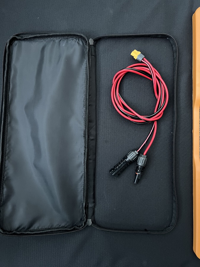 Solární panel je vybavený monokrystalickými články s účinností až 22%, odolným nylonovým pouzdrem, zabudovanou kapsou. Součástí je i skládací podpěra pro snadné rozložení.
