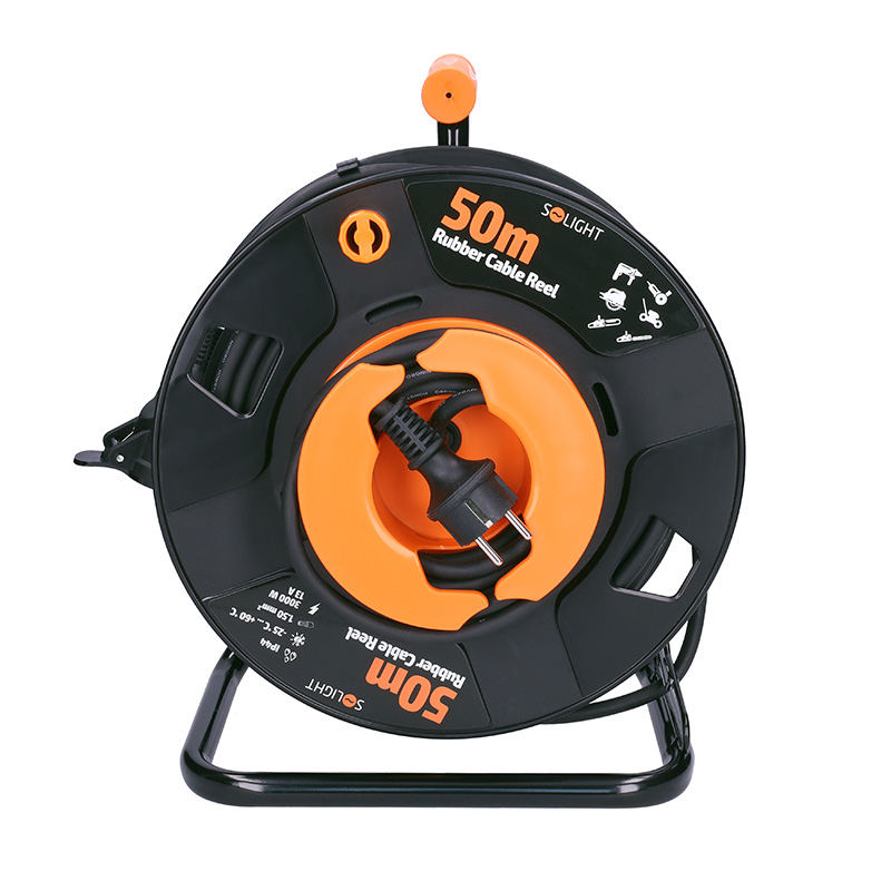 Solight PB31 prodlužovací přívod na bubnu, 1 zásuvka, venkovní, 50m gumový kabel, 3x 1,5mm2, IP44