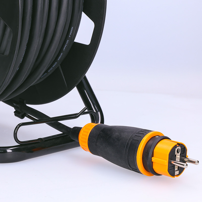 Maximální zátěž 3680 W (16 A při 230 V~) umožňuje bezpečný provoz většiny venkovních a profesionálních zařízení. Ergonomické madlo usnadňuje přenášení a rychlé navinutí kabelu. Ideální pomocník pro profesionální stavební práce, údržbu nebo náročné hobby projekty.