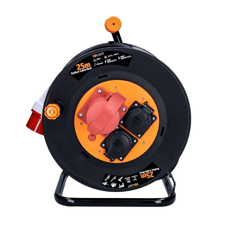 Solight PB40 prodlužovací přívod na bubnu, 3 zásuvky, 400V + 230V, 25m gumový kabel 5x1,5mm2, IP44