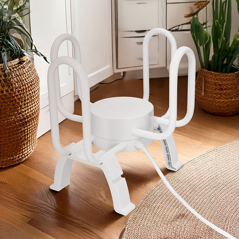 Sušák na boty Sušák obuvi a rukavic pro až 2 páry najednou. Ovládání pomocí přepínače zapnutí/vypnutí se světelným indikátorem. Příkon 40 W a napájení 220–240 V/50Hz. Rozměry: 26 cm (šířka) x 30 cm (výška) x 25,5 cm (hloubka). Hmotnost: přibližně 0,9 kg.Více