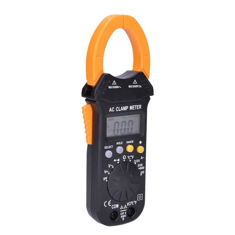 Digitální multimetr pro měření napětí, proudu, odporu a teploty. Nabízí test spojitosti obvodu a diodový test, s podsvíceným displejem pro lepší čitelnost. Automatické vypnutí, uchování poslední hodnoty a možnost ručního nebo automatického nastavení rozsahu. Indikace nesprávné polarity a indikace vybité baterie. Měřicí rozsahy: DC napětí (200mV - 600V), AC napětí (200mV - 600V), AC proud (2A - 600A), rezistence (200? - 20M?) a teplota (-40°C - 1370°C). Napájení: 2x AAA baterie (nejsou součástí balení). Rozměry: 190x68x28mm, hmotnost: 139g. Součástí balení: měřící kabely, teplotní sonda, pouzdro.