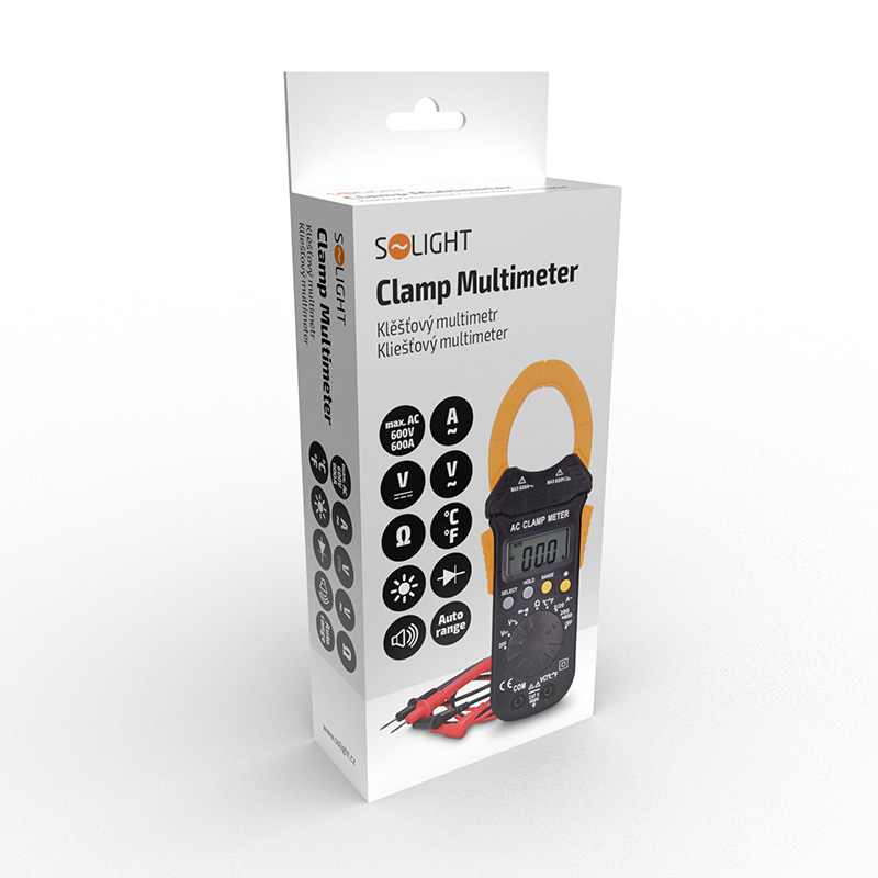 Solight V50 klešťový multimetr, max. AC 600V/600A, max. DC 600V, test diody, bzučák, odpor, teplota