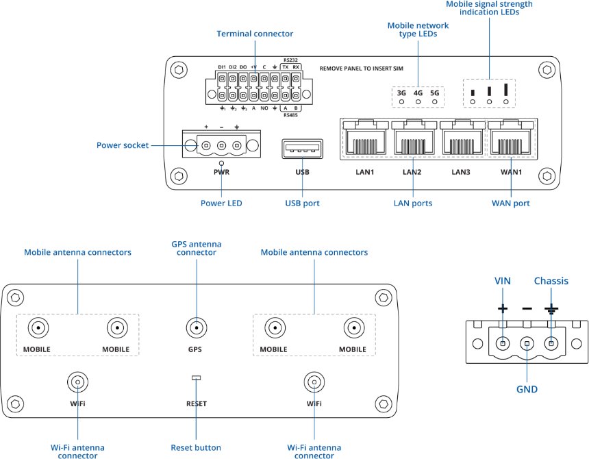 - (4) SMA female (5G) + (2) RSMA female (Wi-Fi) + (1) SMA female (GNSS)