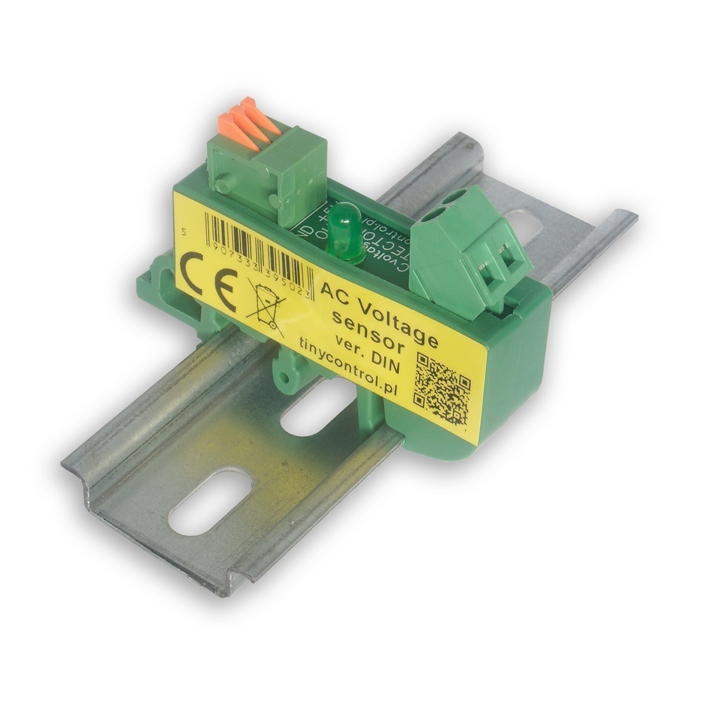 Tinycontrol AC SENSOR ver. DIN. Senzor určený k montáži do elektrického rozvaděče na DIN lištu. Jednoduchým způsobem indikuje dostupnost síťového napětí 230 V. Je obzvláště užitečný ve všech instalacích s UPS. Optická měřicí metoda zaručuje galvanické oddVíce
