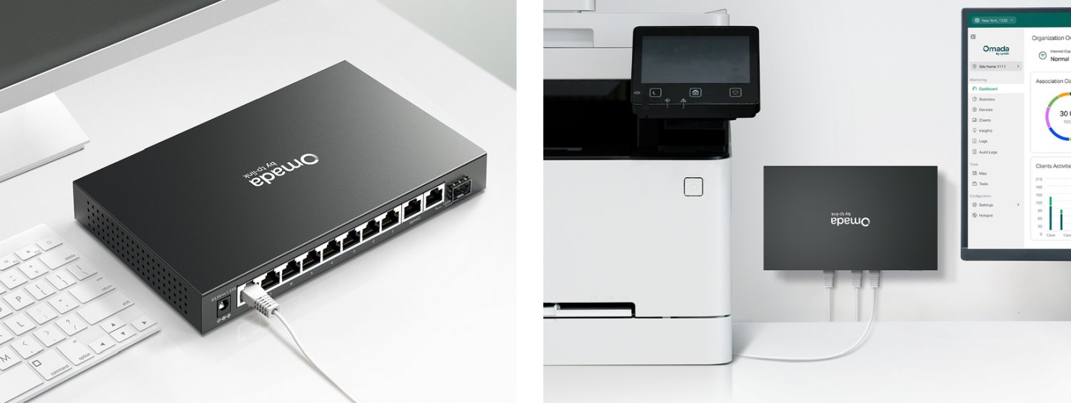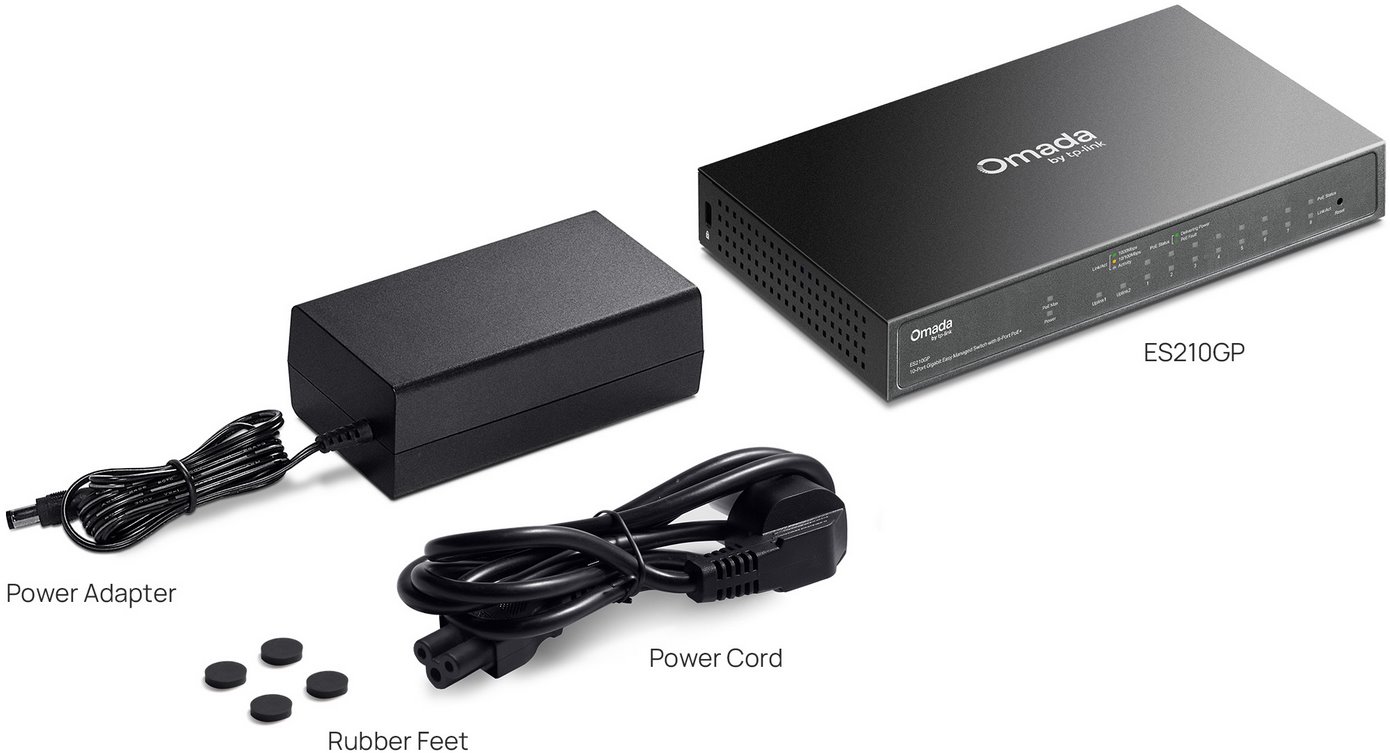 Omada 10portový gigabitový easy managed switch nabízí 9× 10/100/1000 Mb/s RJ45 portů, z toho 8 portů s podporou PoE+, které umožňují napájet připojená zařízení přímo přes síťový kabel. Kombinovaný gigabitový SFP/RJ45 port rozšiřuje možnosti připojení a poVíce