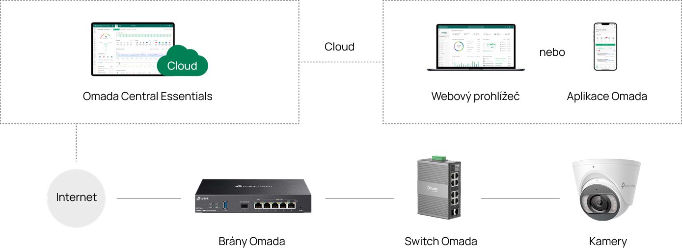 - Centralizovaná cloudová správa přes web nebo aplikaci Omada