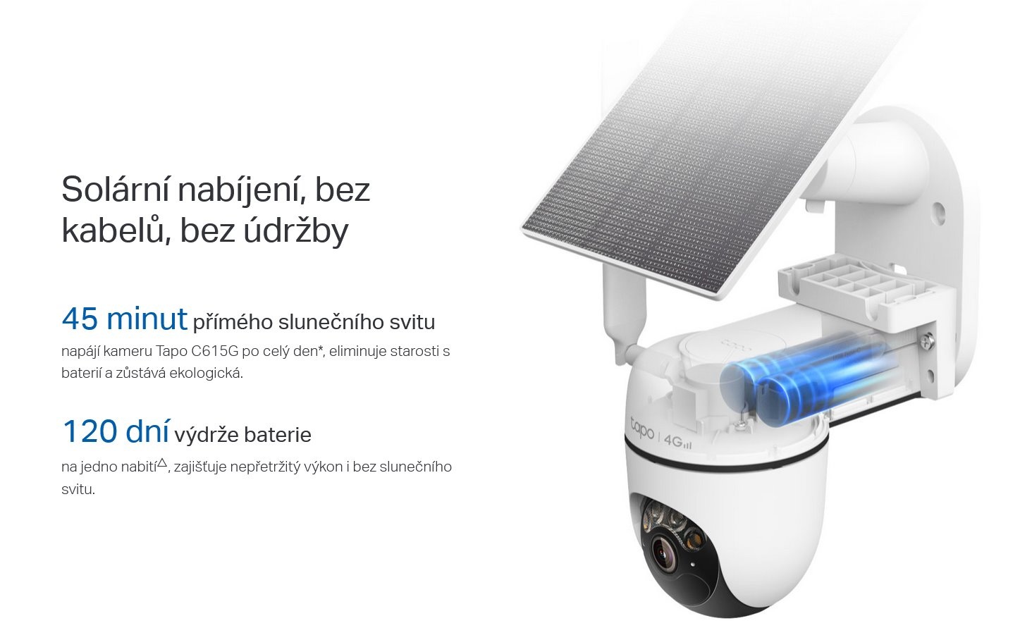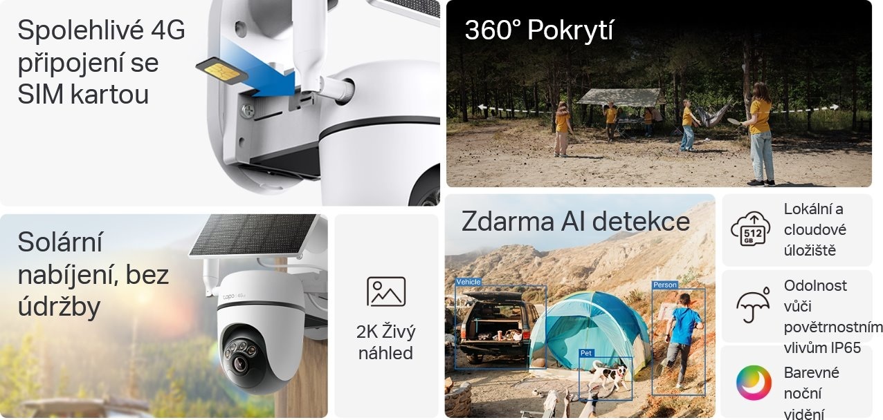 Napájení pomocí solárního nabíjení a spolehlivé 4G připojení umožňují bezúdržbový a flexibilní provoz i v místech bez elektrické sítě a Wi-Fi. Bezpečné lokální nebo cloudové úložiště poskytuje ochranu záznamů proti ztrátě či neoprávněnému přístupu. Kamera je tak ideální volbou pro dlouhodobý dohled nad domem, chatou, stavbou či firemním areálem s maximální mírou nezávislosti a spolehlivosti.