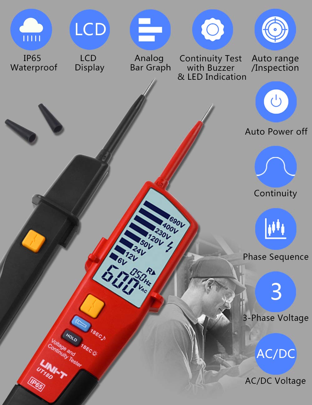 Na tento výrobek poskytujeme 3 roky záruku. Zkoušečka UT18D. Tester ze série UT18D je navržen pro testování střídavého / stejnosměrného napětí, třífázového napětí, sledu fází, kontinuity a dalších. Tato řada je zařazena do kategorie CAT IV 600V a splňuje Více