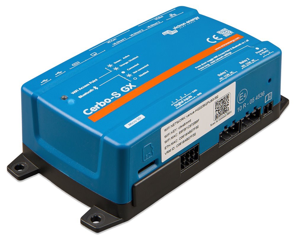 Zařízení Cerbo-S GX maximalizuje výkon komponentů energetického systému v reálném čase a perfektně celý systém seřizuje. Díky procesoru Dual-Core a portu sběrnice CAN můžete nyní podporovat ještě větší systémy a také sledovat ovládané (lithiové) baterie. Díky nové podpoře NMEA 2000-out zařízení GX lze jednoduše začlenit do sítě jakékoliv lodě. 3 porty VE.Direct, 3 porty USB, 4 digitálními vstupy a 2 relé posunují možnosti ovládání na novou úroveň. Maximalizace výkonu celého energetického systému je jednodušší než kdykoliv předtím.