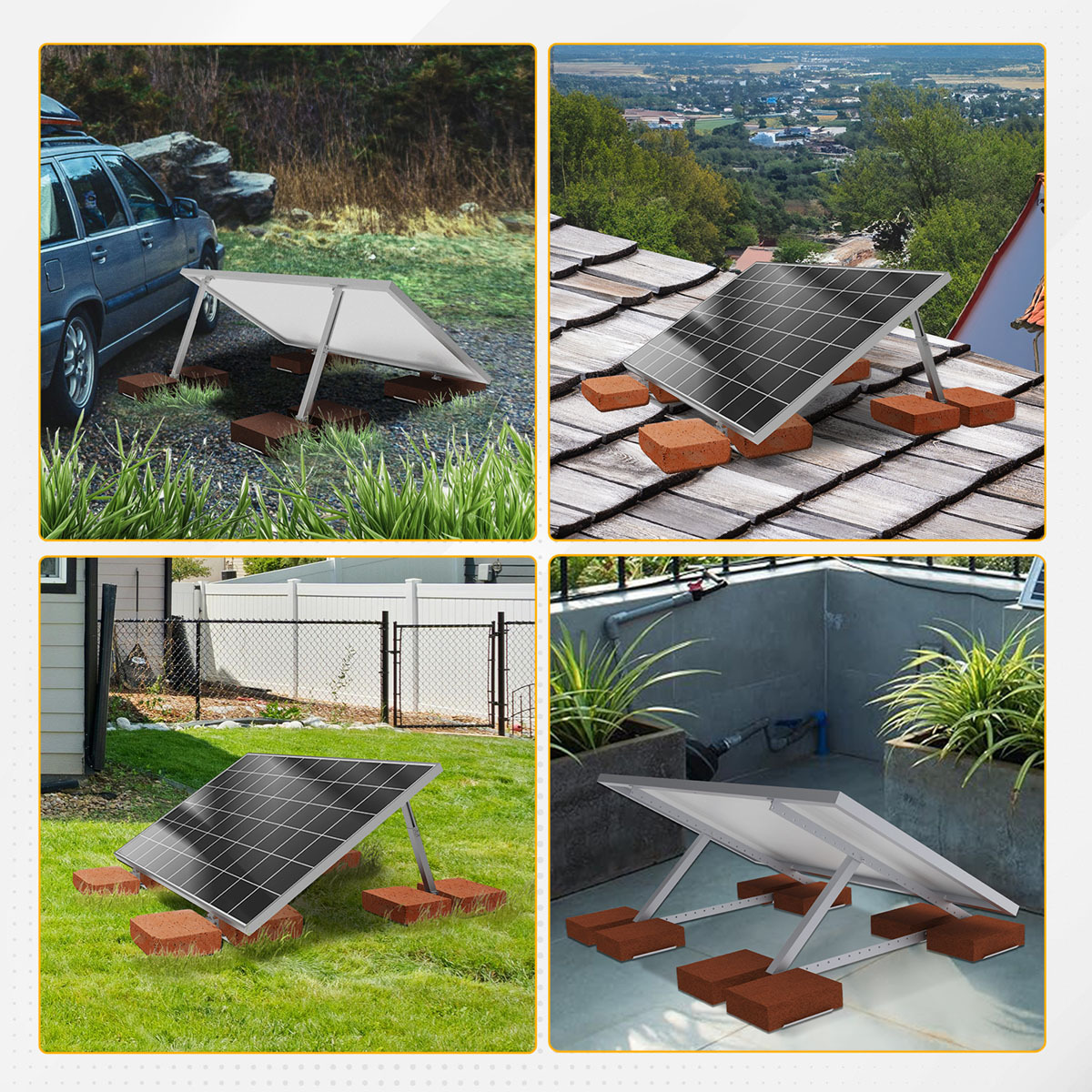 Tato montážní sada je ideálním řešením pro instalaci solárních panelů na ploché střechy bez nutnosti vrtání či zásahu do střešní konstrukce. Hliníková konstrukce je lehká, odolná vůči korozi a snadno se instaluje. Díky zátěžovému principu drží pevně na míVíce
